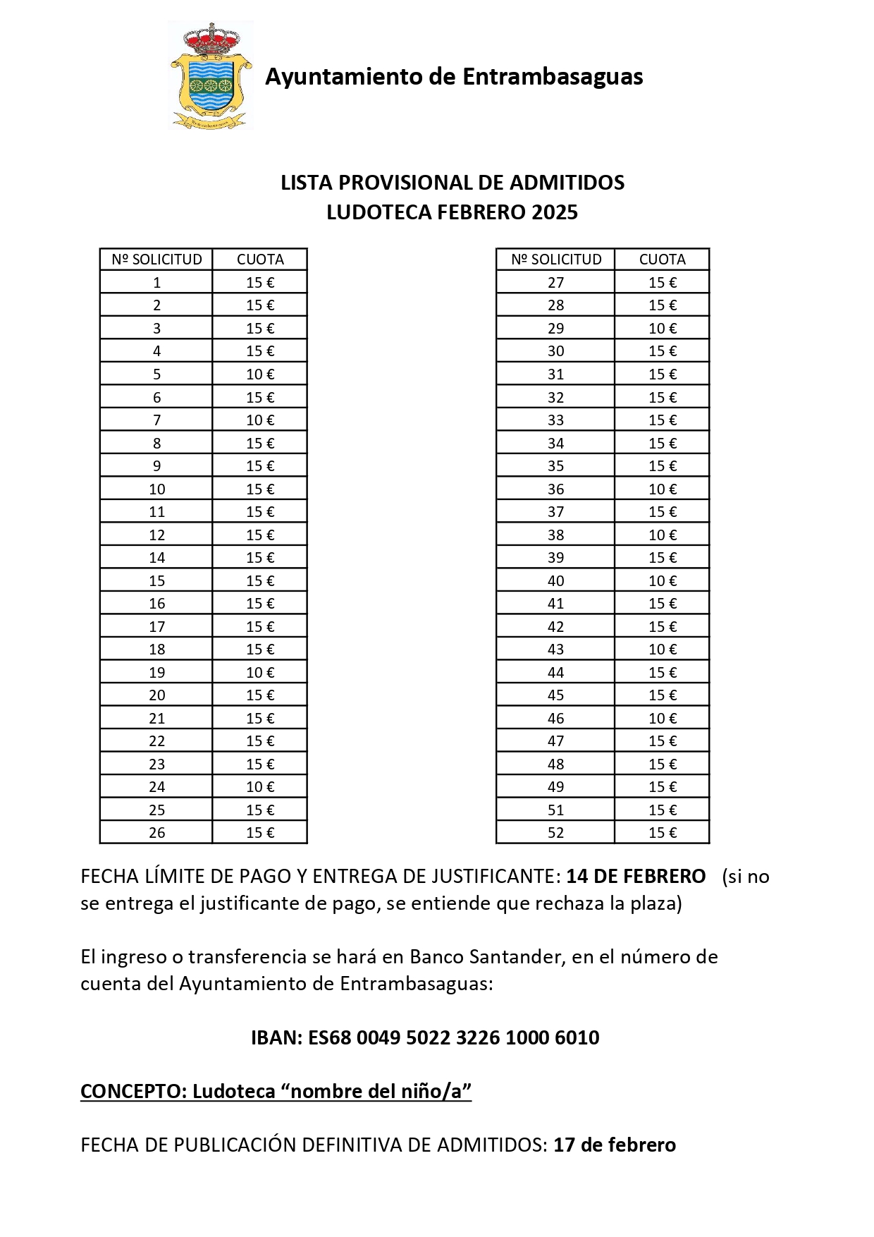 Lista provisional de admitidos, Ludoteca febrero 2025 / February 11, 2025 Enviado por Oscar el February 11, 2025