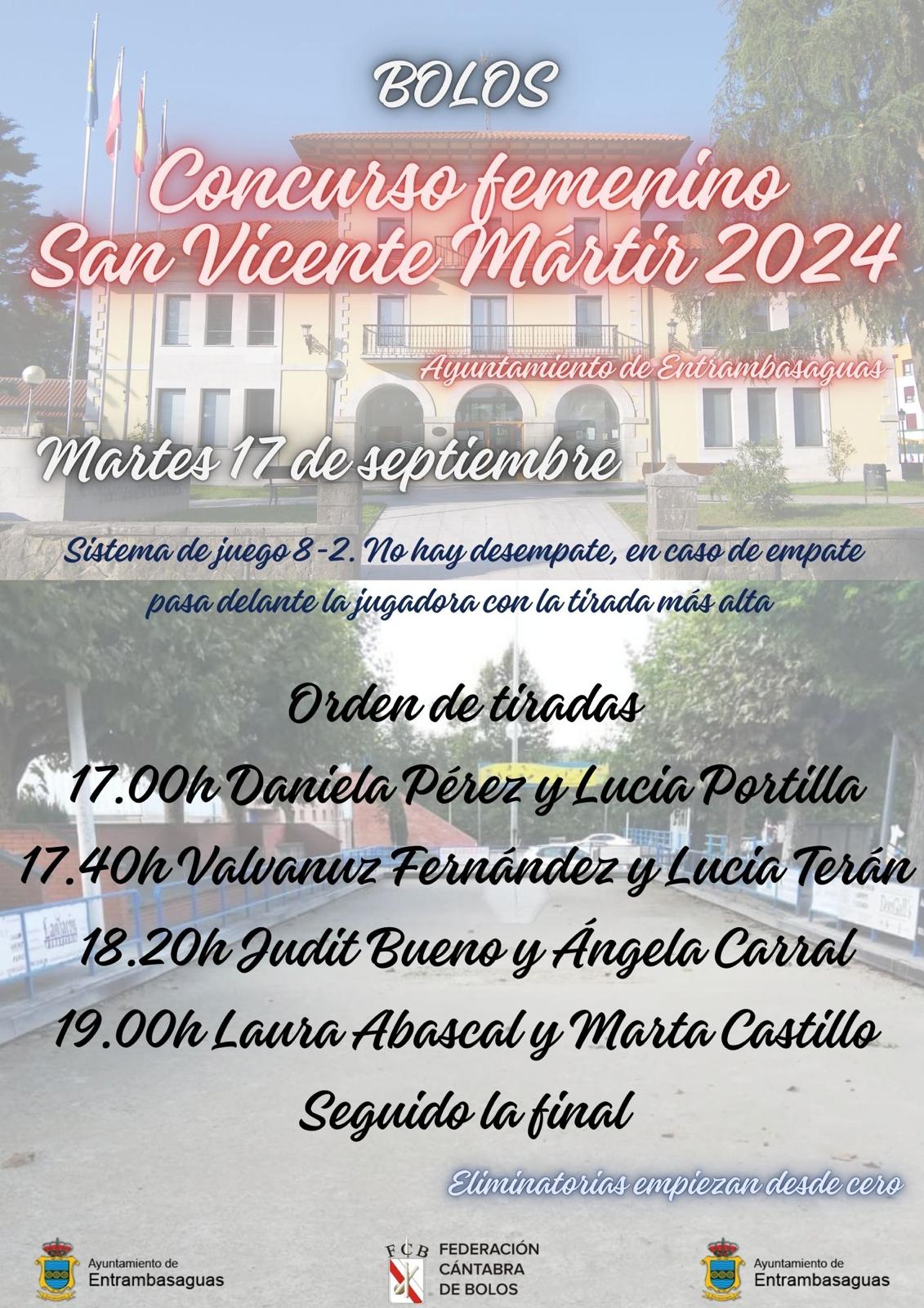 2024-09-17 17:00 h Bolera Municipal de Entrambasaguas Concurso femenino de bolos San Vicente Mártir 2024