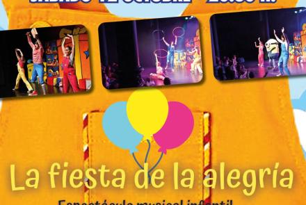 12Octubre Espectáculo infantil "La fiesta de la Alegría" 16:30 h - Aparcamientos de Vulcanizados Hoznayo. Tarde para los pequeños: 16:30 parque infantil y 20:30 espectáculo "La fiesta