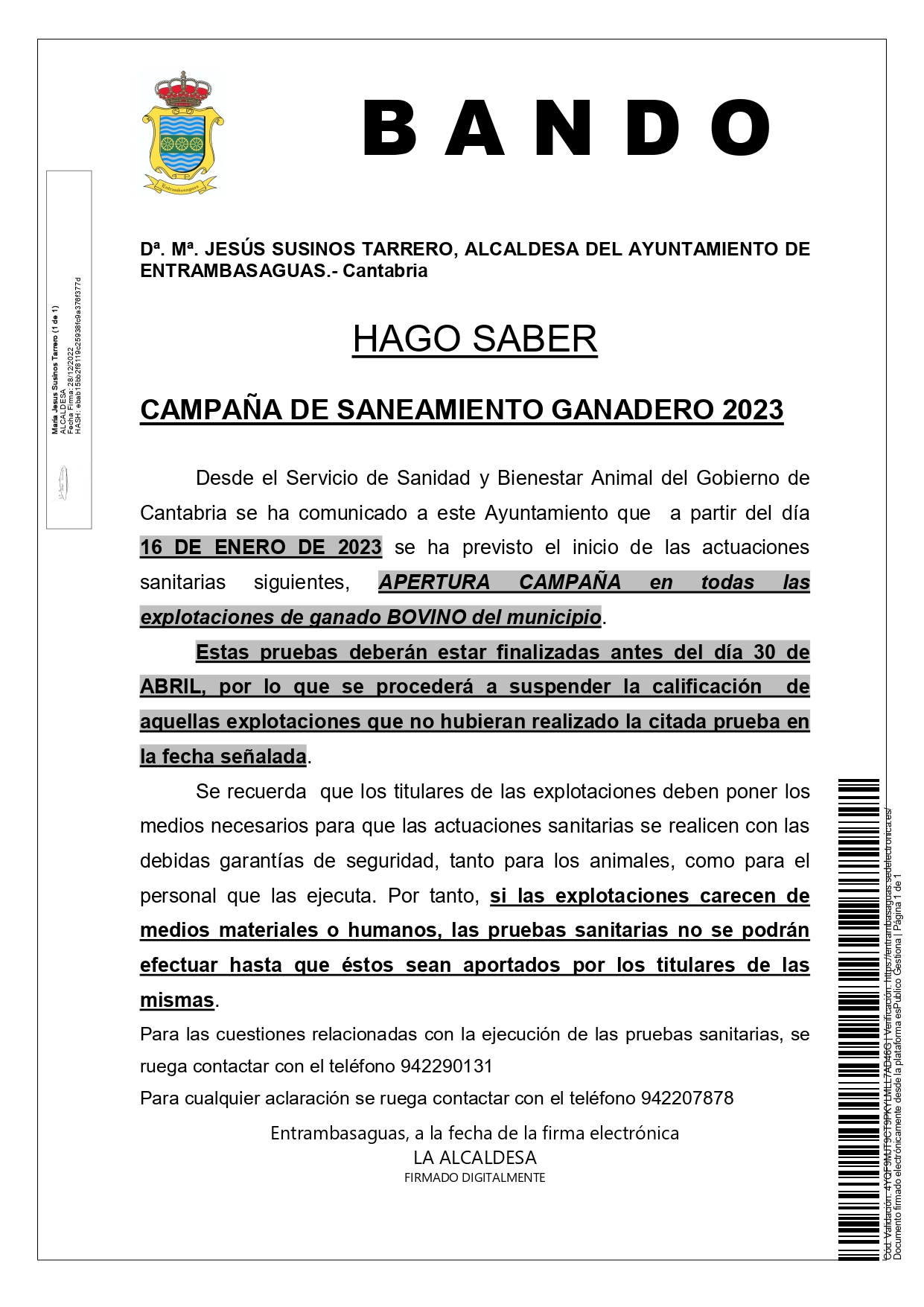 Bando. Campaña de saneamiento ganadero 2023. / December 28, 2022 Enviado por Oscar el December 28, 2022