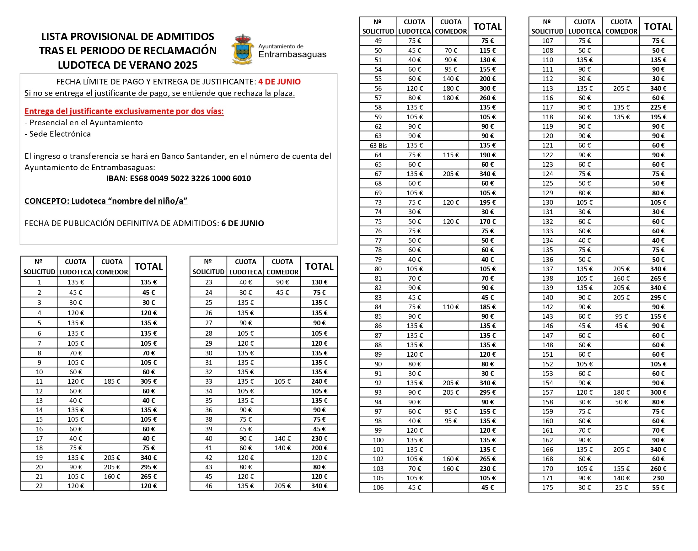 Lista provisional de admitidos tras el periodo de reclamación, Ludoteca de Verano 2025 / May 29, 2025 Enviado por Oscar el May 29, 2025 Lista provisional de admitidos tras el periodo de reclamación, Ludoteca de Verano 2025. PDF (474.31 KB)