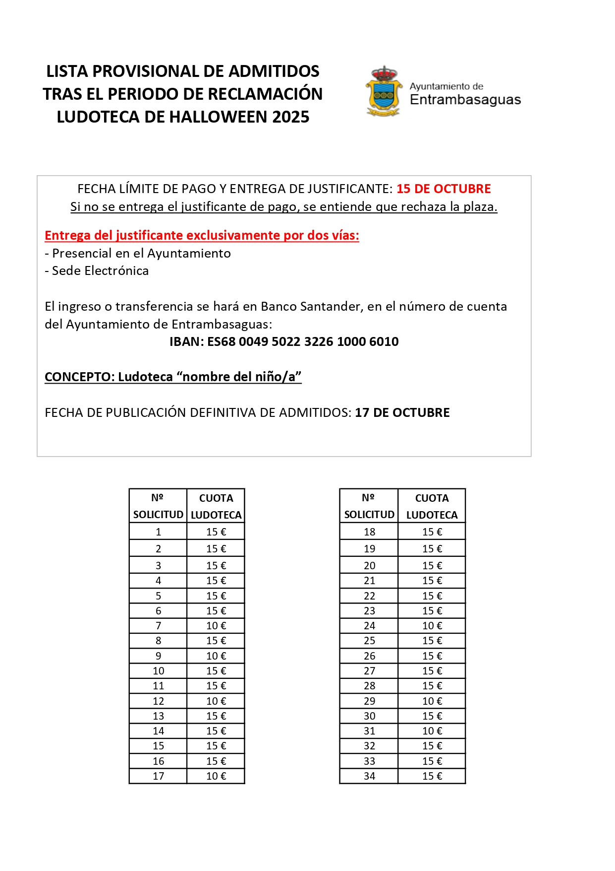 Lista provisional de admitidos tras el periodo de reclamación, Ludoteca Halloween 2025 / October 10, 2025 Enviado por Oscar el October 10, 2025