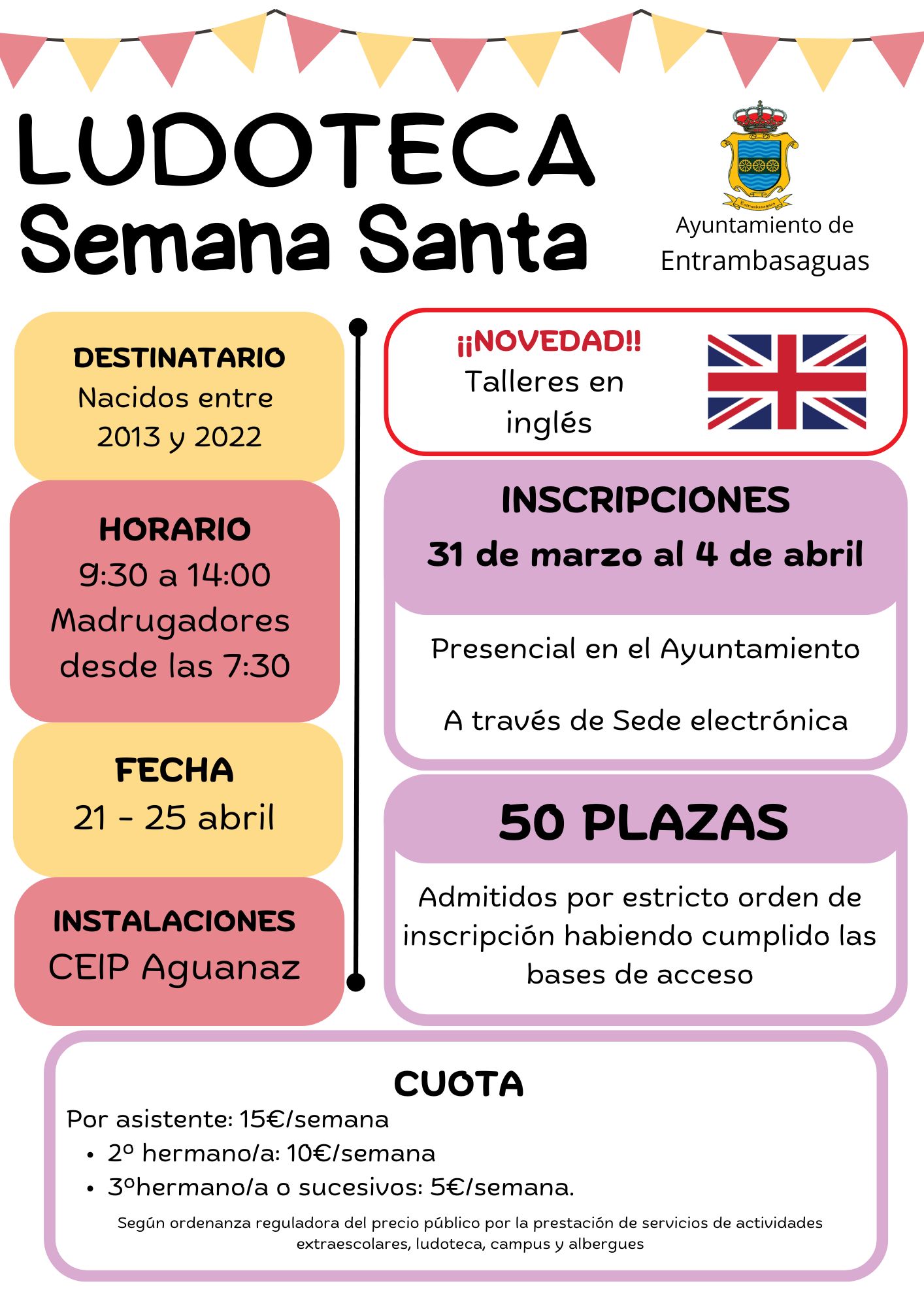 Ludoteca de Semana Santa / March 25, 2025 Enviado por Oscar el March 25, 2025 Bases, inscripción y autorizaciones. (343.58 KB)