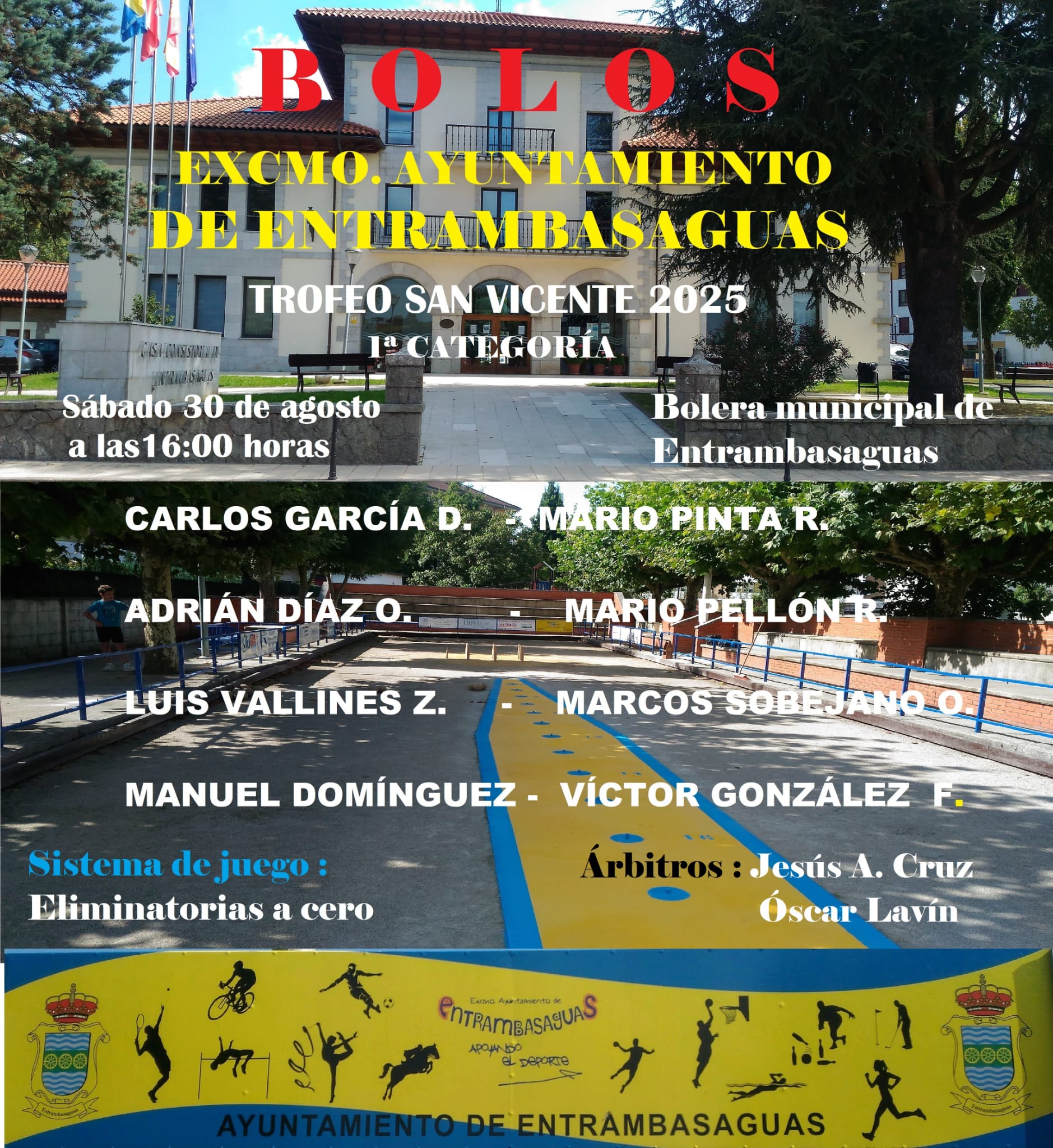 2025-08-30 16:00 h Bolera Municipal de Entrambasaguas Bolos de 1ª Categoría. Trofeo San Vicente 2025.