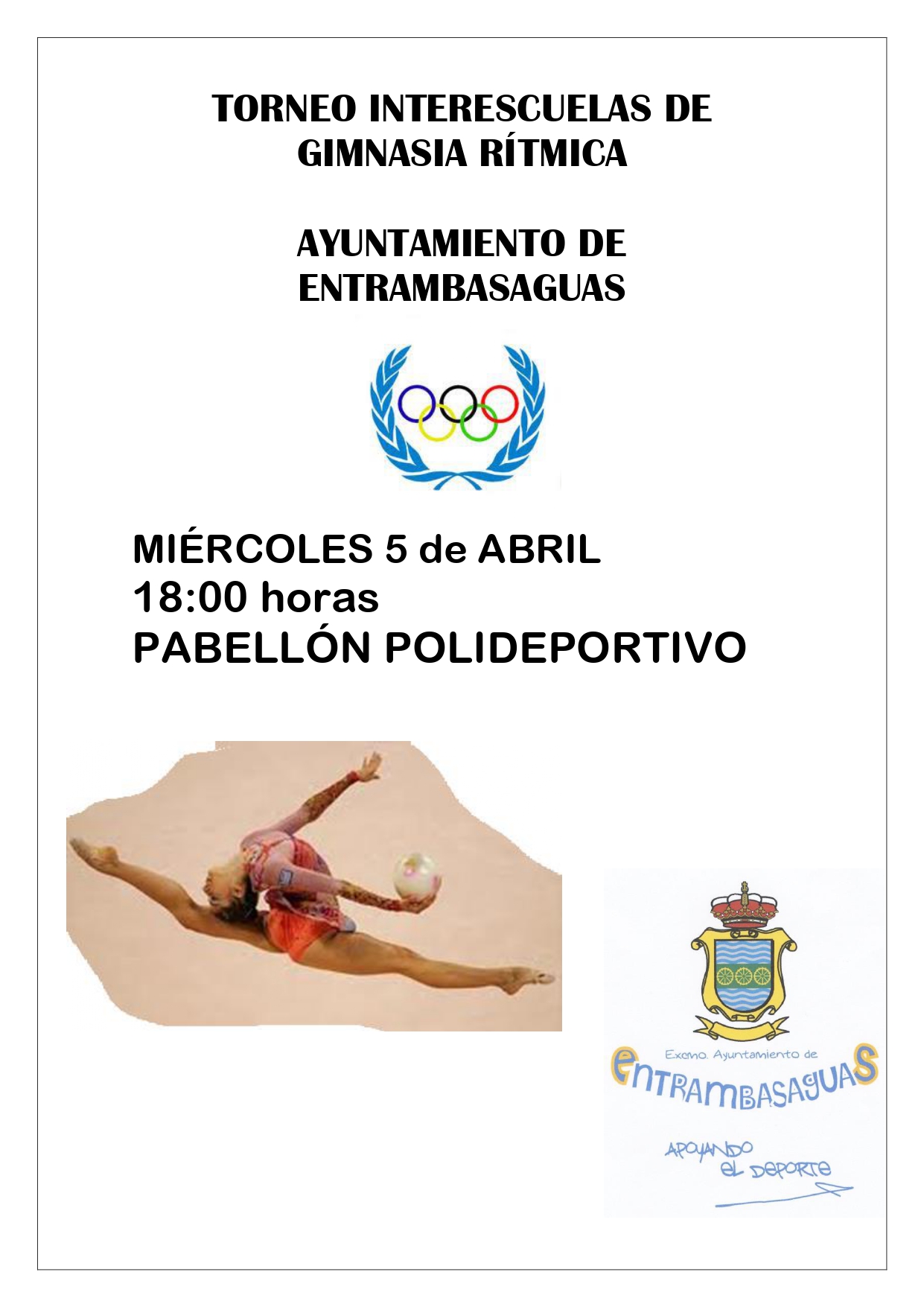 2023-04-05 18:00 horas Pabellón Polideportivo de Entrambasaguas Torneo Interescuelas de Gimnasia Rítmica.