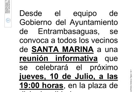 10Julio ANUNCIO Reunión informativa para los vecinos de Santa Marina. 19:00 h - Plaza de Santa Marina Como estaba previsto, comenzamos con las reuniones informativas en los distin
