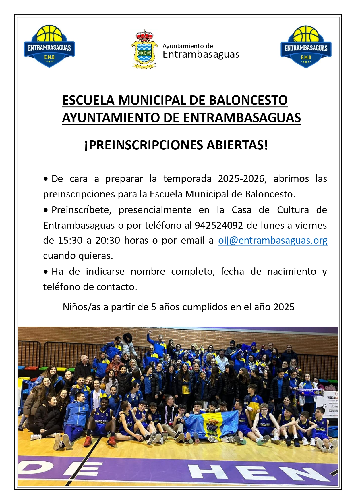 🏀Preinscripciones abiertas Escuela Municipal de Baloncesto🏀 / August 14, 2025 Enviado por Oscar el August 14, 2025